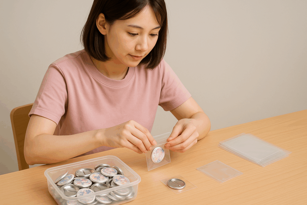 缶バッジ作成、袋詰めや梱包、シール貼りや封入作業などの軽作業